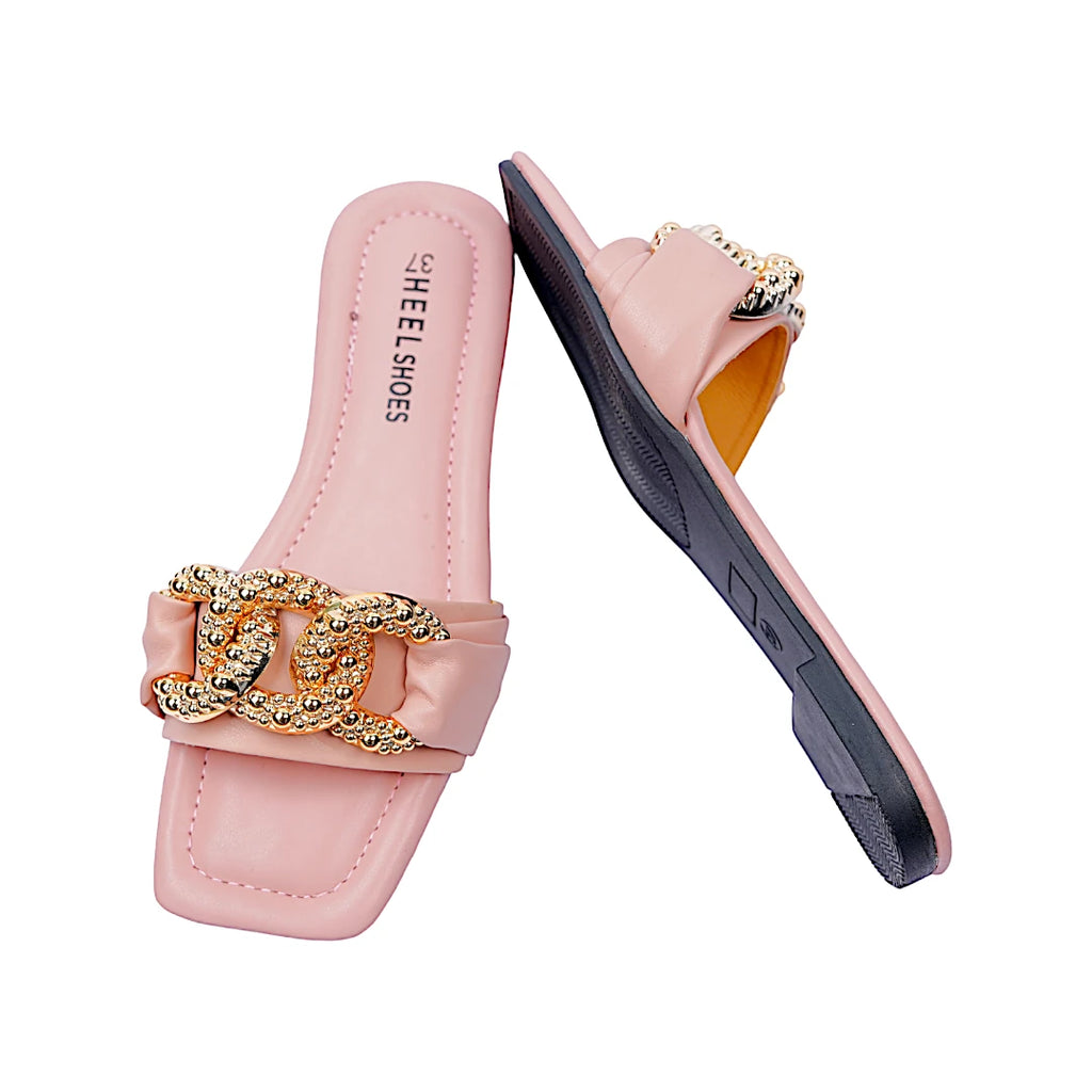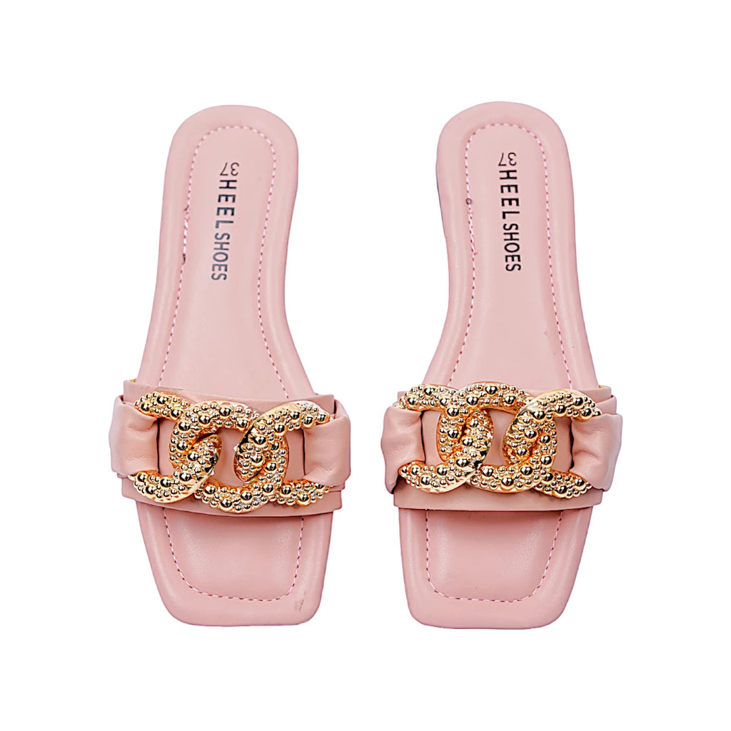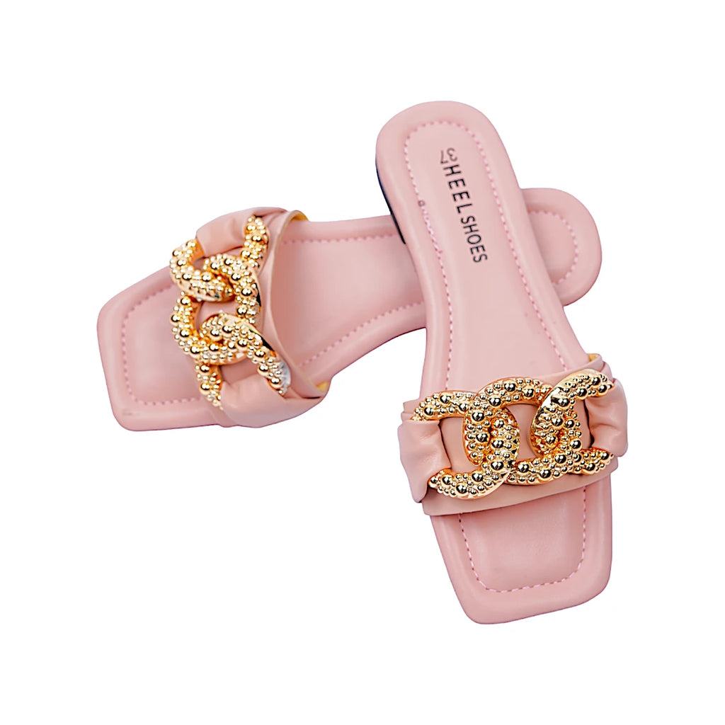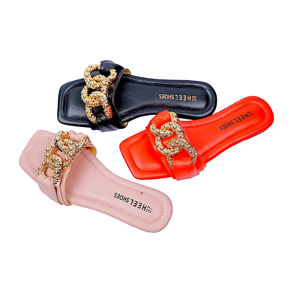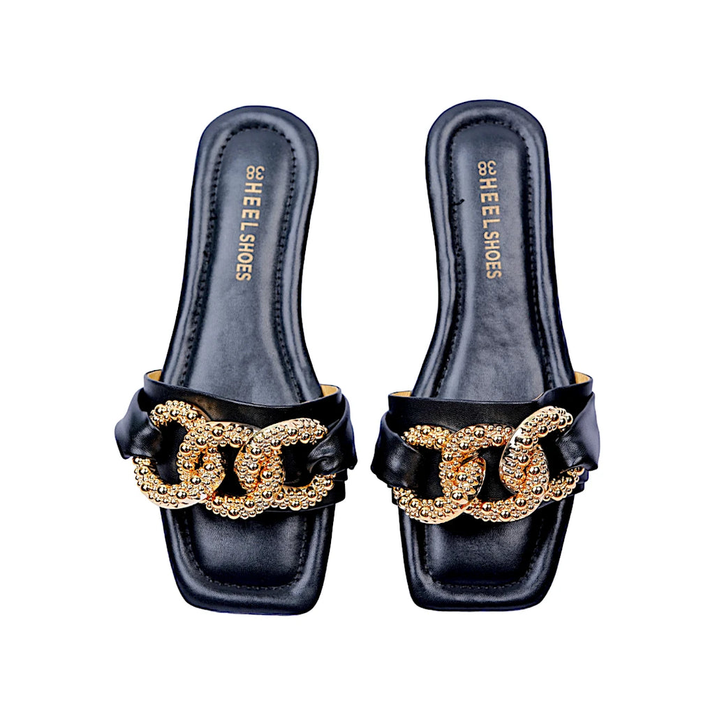 Add a touch of elegance to your casual wear with our chain deco sliders. These stylish and comfortable shoes feature chic chain details, perfect for any occasion. Shop now.