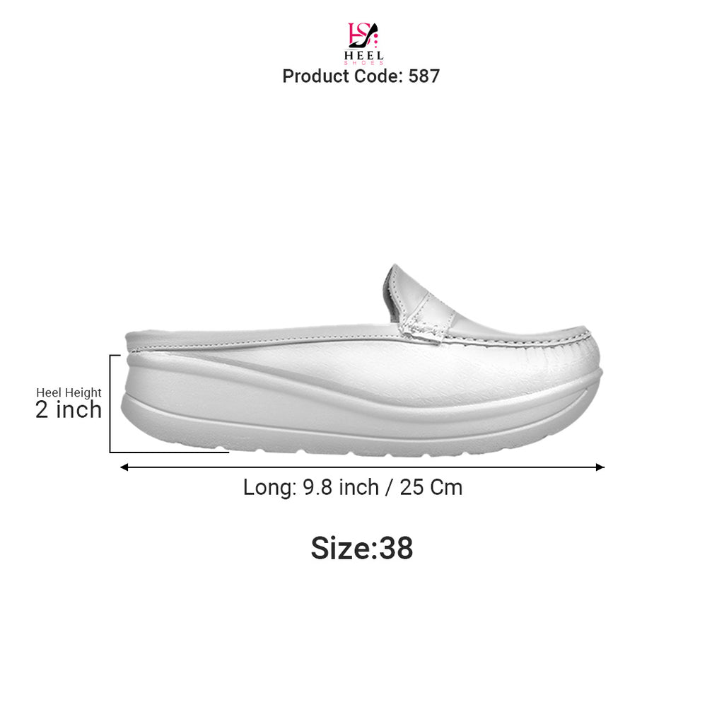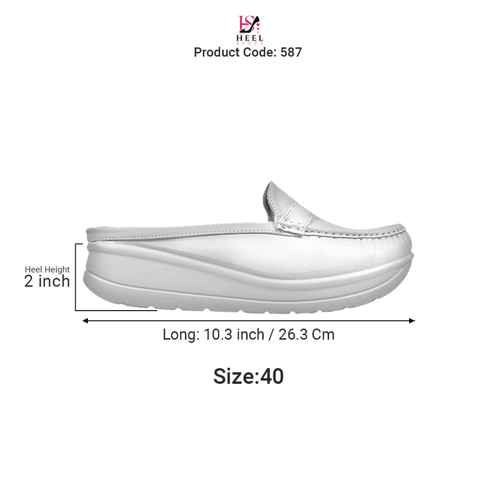The Dr. Half Wedge Heel refers to a specific style of footwear designed to offer both comfort and style, likely produced by a brand that emphasizes orthopedic or medical benefits.